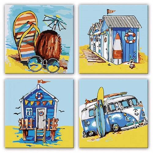 - 4 полотна на деревянных подрамниках 18 * 18. На каждом полотне размещены контуры изображения с номерами под раскраску.