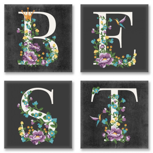 Каждая буква расположена на отдельном полотне с цветным фоном - вы сможете составить эксклюзивную композицию на свой вкус.