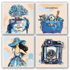 - 4 полотна на деревянных подрамниках 18 * 18. На каждом полотне размещены контуры изображения с номерами под раскраску.