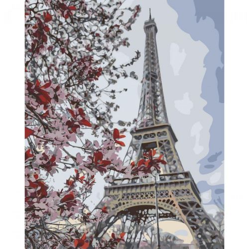 Набір для розпису по номерах SY6532 Квіти дерева біля вежі розміром 40х50 см