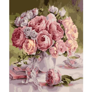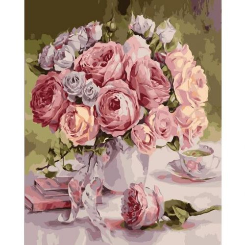 Набір для розпису по номерах VA-1242 Вінтажний букет троянд розміром 40х50 см