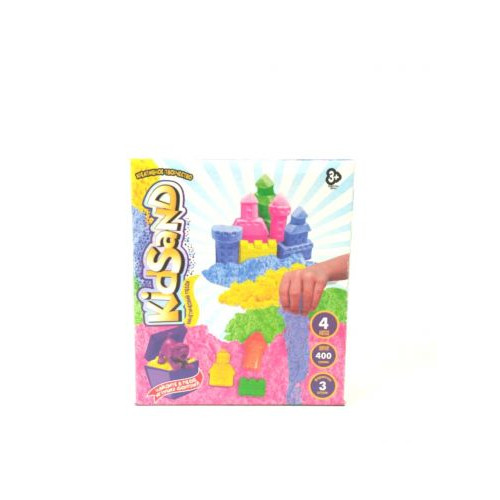 Кинетический песок 'KidSand' с формочками, 400 г. Такой песок прекрасно держит любую форму, быстро распадается при необходимости, а его строение отличается одновременно пористостью и прочностью. По ощущениям такой песок напоминает сырой морской песок, только он без воды, не прилипает к рукам, не пачкает одежду. В комплекте с песком идут 3 пасочки и фигурка собачки.