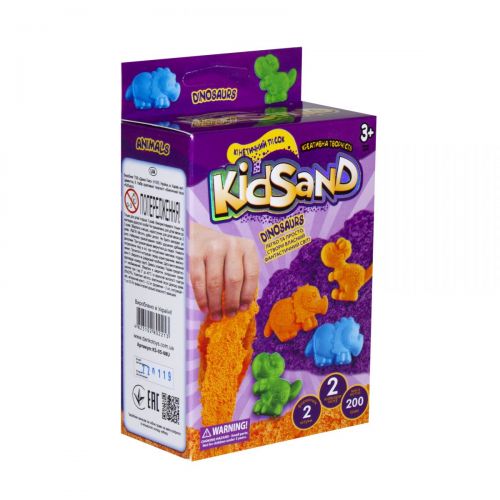 Кинетический песок KidSand: Динозавры с формочками, KS-05-08U, 200 г (укр) KS-05-01U, 02U