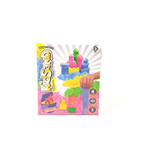Кинетический песок 'KidSand' с формочками, 400 г. Такой песок прекрасно держит любую форму, быстро распадается при необходимости, а его строение отличается одновременно пористостью и прочностью. По ощущениям такой песок напоминает сырой морской песок, только он без воды, не прилипает к рукам, не пачкает одежду. В комплекте с песком идут 3 пасочки и фигурка собачки.