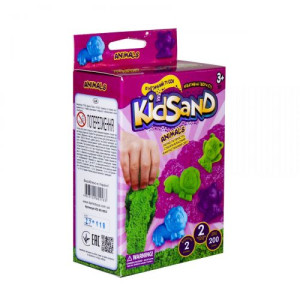 Кинетический песок 'KidSand' с формочками, 200 г. Такой песок прекрасно держит любую форму, быстро распадается при необходимости, а его строение отличается одновременно пористостью и прочностью. По ощущениям такой песок напоминает сырой морской песок, только он без воды, не прилипает к рукам, не пачкает одежду. 2 цвета песка. В комплекте идут 2 пасочки.