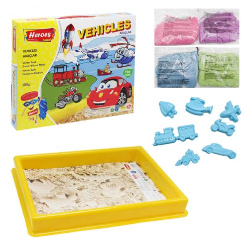 Набор кинетического песка с формочками для лепки. Размер песочницы - 31х40 см., высота - 6 см. В наборе есть: песочница, формочки для лепки - 7 шт., кинетический песок - 1000 г.