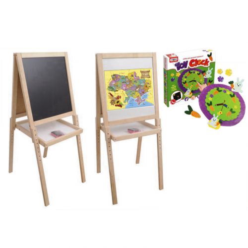 | Комплектация | Мольберт, набор "Toy Clock", магнитная карта, 6 мелков, губка |