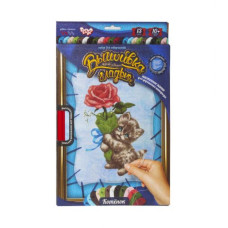 Вышивка гладью по номерам на растяжке, Котёнок с розой VGL-01-07 VGL-01-01,02, В наличии:1шт.Артикулt101418