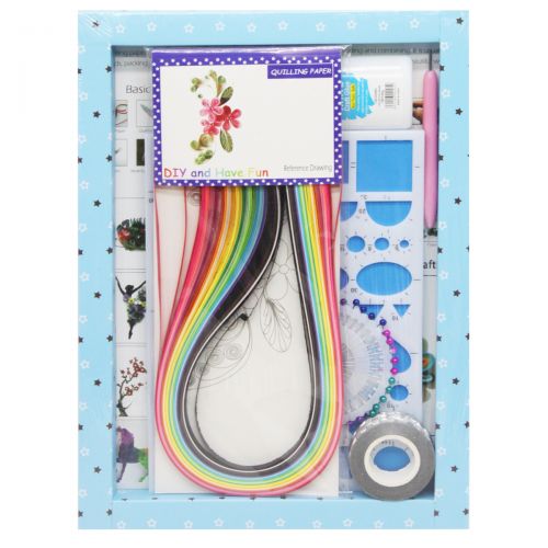 | Комплектация | Бумага - 16 цветов; доска с отверстиями разных диаметров - 1 шт; инструмент для закручивания с пластиковой ручкой и металлическим наконечником - 2 шт; щипцы металлические - 1 шт; набор булавок; блестящая лента - 1 шт; клей; бумажный трафарет |