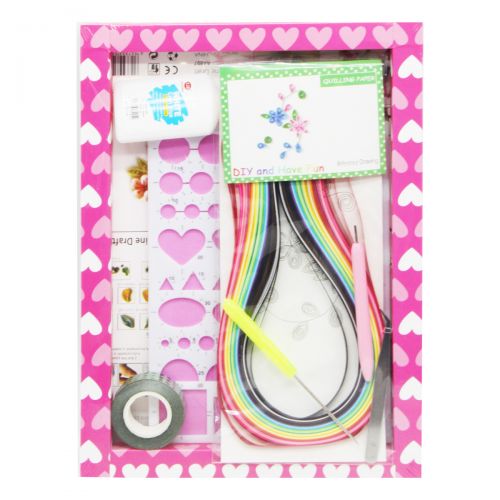 | Комплектация | Бумага - 16 цветов; доска с отверстиями разных диаметров - 1 шт; инструмент для закручивания с пластиковой ручкой и металлическим наконечником - 2 шт; щипцы металлические - 1 шт; набор булавок; блестящая лента - 1 шт; клей; бумажный трафарет |