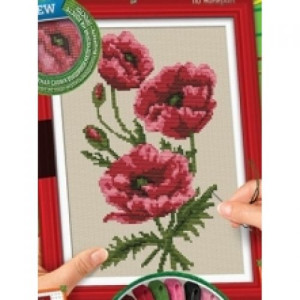 Вышивка крестиком по цветной схеме на канве. В наборе: комплект разноцветных ниток мулине, канва с рисунком, игла, канцелярские кнопки, багетная рамка и инструкция. 7 цветов. Размер рамки: 23 х 32 см.