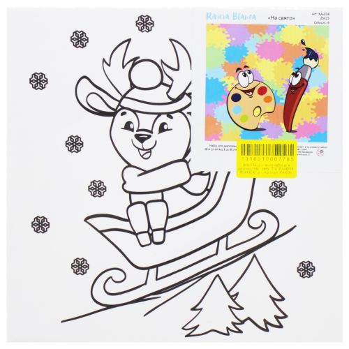 Набор для детского творчества 'На праздник' - это прекрасный подарок, хороший сувенир и полезное приобретение для творческого досуга, ведь результат занятия таким хобби - польза для здоровья (отдых), а интерьер обзаведется красивым декором. В наборе: натуральное полотно на подрамнике, художественная кисти, палитра красок в контейнерах - 9 цветов. Все необходимые краски уже в комплекте и не требуют смешивания. Размер: 22,5х22,5 см.