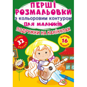 Книга Перші розмальовки з кольоровим контуром для малюків. Подружки на канікулах. 32 великі наліпки