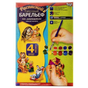 Комплектация: Форма для 4-х фигур, гипсовый порошок, 6 цветов краски, кисточка, магнитная лента, инструкция
