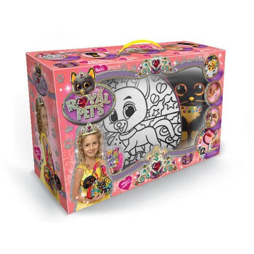Набор креативного творчества 'ROYAL PET'S'. 5 в 1. Создай свой собственный и неповторимый стиль, раскрашивая две стороны сумочки акриловыми красками (12 цветов) и декорируя рисунок разноцветными кристаллами. Кроме того, в наборе есть корона и браслет на руку которые необходимо украсить. + плюшевая игрушка.