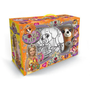 Набор креативного творчества 'ROYAL PET'S'. 5 в 1. Создай свой собственный и неповторимый стиль, раскрашивая две стороны сумочки акриловыми красками (12 цветов) и декорируя рисунок разноцветными кристаллами. Кроме того, в наборе есть корона и браслет на руку которые необходимо украсить. + плюшевая игрушка.