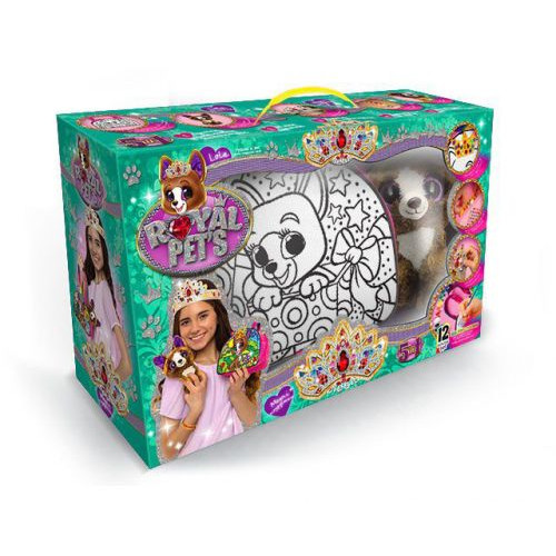 Набор креативного творчества 'ROYAL PET'S'. 5 в 1. Создай свой собственный и неповторимый стиль, раскрашивая две стороны сумочки акриловыми красками (12 цветов) и декорируя рисунок разноцветными кристаллами. Кроме того, в наборе есть корона и браслет на руку которые необходимо украсить. + плюшевая игрушка.