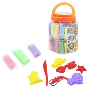 Набор для креативного творчества состоит из: 30 брикетов теста для лепки, 12 брикетов воздушного пластилина, 12 брикетов шарикового пластилина + стек и 8 формочек. Упакован в симпатичную банку с закрывающейся крышкой. Инструкция с идеями для лепки в комплекте.