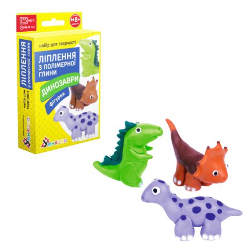 Набор для лепки из полимерной глины. Полимерная глина – это специально созданный материал, который лепится как пластилин, но при этом затвердевает в духовке при очень высоких температурах (100°C на 10-12 минут). Создай яркие фигурки динозавриков своими руками.