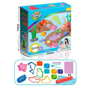 Содержит все необходимое для интересного творческого процесса лепки забавных фигурок и морских животных: несколько цветов мягкого и эластичного теста, много инструментов для работы с тестом, специальный коврик для лепки, а также формы для изготовления из теста разнообразных фигур и морских животных.