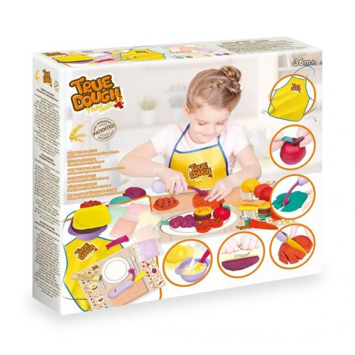 Комплектация: 6 пакетиков со смесью (по 80 г.), мерная ложечка, миска для замешивания, крышка, мультиинструмент, деревянная качалка, фартух, цветной игровой коврик.