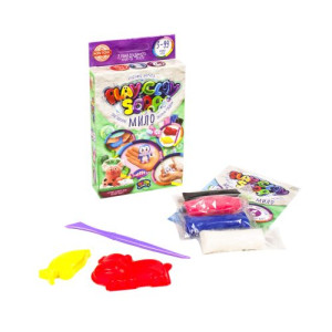 Набор для творчества 'Пластилиновое мыло'. Набор представляет собой пластилин, из которого можно лепить разнообразные фигурки и игрушки, а затем мыть ими ручки и купаться. В набор входят: мыльная основа (4 цвета), 2 формочки, стек, инструкция.