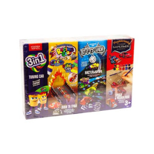 Набор креативного творчества 3 в 1 'Tuning Car'. Набор креативного творчества, предназначенный для детей, станет приятным подарком для любителей автогонок и тюнинговых суперкаров. Набор содержит три игры: 1. Лепка из пластилина 'Racing Clay'. В игре Вам придется самостоятельно придумать дизайн своего авто и с помощью воздушного или шарикового пластилина слепить его, используя каркас инерционной машинки. В комплект идет трамплин для трюков; 2. Настольная игра 'КР-Р-РУ-ТАЧКИ'. Покоряйте крутые виражи на своем суперкаре и лидируйте первым; 3. Гипсовой барельеф магнит-раскраска. Сделай фигурку из гипса и раскрась.