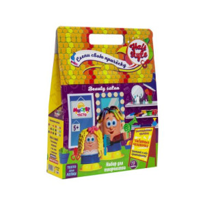 Набор креативного творчества 'Мистер Тесто: Салон красоты'. Создавай разноцветные прически и развивай в себе креативность. 2 забавных человечка в комплекте. Тесто безопасноое, не пачкает рук, цвета удобно смешиваются. 19 предметов в наборе: 6 стиков, 3 контейнера, 2 человечка (мальчик и девочка), ножки-насадки, машинка для стрижки, расческа, ножик, фен, ножницы.
