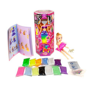 Комплектация: Кукла, собачка, воздушний и шариковый пластилин (по 7 цветов), комплект кристаллов и страз, глиттерные блестки, акриловы лак на водной основе, инструкция