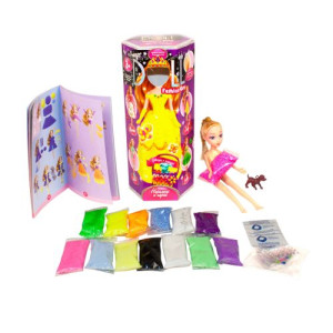 Комплектация: Кукла, собачка, воздушний и шариковый пластилин (по 7 цветов), комплект кристаллов и страз, глиттерные блестки, акриловы лак на водной основе, инструкция