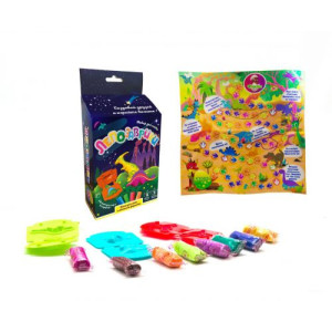 Набор теста для лепки 'Липозаврикы'. Набор включает: 8 цветов теста, 3 объемных формочки в виде динозавров и игровое поле.