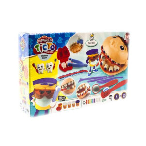 Комплектация: Тесто для лепки (10 шт.), тесто для лепки в баночках (5 шт.), комплект из 3-х стеков, форма для создания зубов, голова, пинцет, зубная щетка, форма для брекетов, зеркало, интсрукция