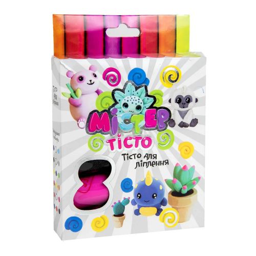 Набор для лепки 'Мистер тесто'. В комплекте есть: тесто для лепки - 8 брусочков в индивидуальной упаковке. Каждый бросок выполнен в ярком цвете, смешивая цвета разных брусочков можно получить уникальный цвет. Выполнено из качественных и безопасных материалов. Для детей от 3-х лет.
