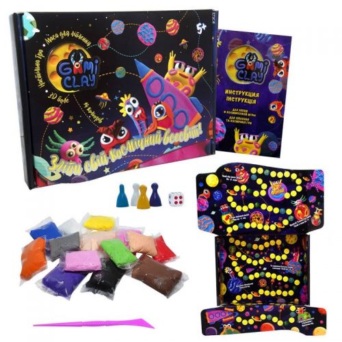 Оригинальная настольная игра с массой для лепки. Комплект состоит из красочного 3D поля, 4-х фишек, кубика, стека, инструкции и 14-ти пакетиков с яркой массой для лепки. 'Gumi Clay' - это лёгкая самозастывающая масса, эластичная, приятная на ощупь, отлично тянется и принимает любую форму. С неё получаются легкие, воздушные игрушки, которые не пачкают руки и поверхность, не разобьются и не треснут при падении. С помощью массы можно создать различных монстриков, которые помогут разнообразить игру.