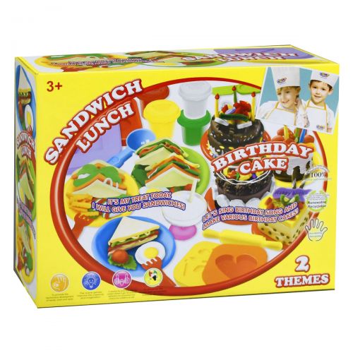Комплектация: 10 баночек с тестом, 5 досточек с формочками, вилка, скалка, нож, мороженица, гриль, 3 тарелки, фартук, повязка, скатерть, инструкция