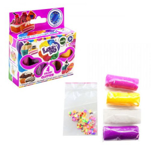 Тесто для лепки 'Lovin'Do Глиттер', 4 х 20 г, с декором. Тесто приятное на ощупь, нетоксичное. В наборе 4 ярких стика теста с глиттером + стикеры конфетти.