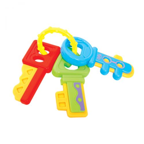 Яркая погремушка в виде брелка с 3-мя ключиками. Ключики можно отсоединять от брелка. Игрушка изготовлена из качественного пластика и имеет резиновые вставки.