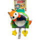 Мягкая погремушка в виде геометрической фигуры, выполнена в контрастных цветах. Внутри игрушки находится колокольчик, который издает приятный, мелодичный звук. К игрушке прикреплены пластиковые подвесочки, прорезыватель и пищалка. Крепится к коляске или кроватке при помощи кольца-крепления.