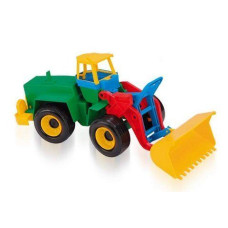 Яркий пластиковый трактор с подвижным ковшом и большими колёсами. Изготовлен из качественного пласти..
